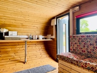 Inspired by the dwellings made popular in the Lord of the Rings, the Hobbit Pod adds charm and character to your stay. It is fully heated and has electric throughout.